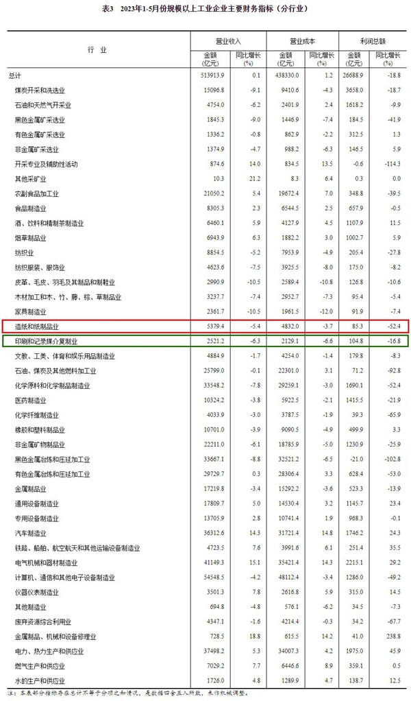 1—5月份,規(gui)模以上(shang)工業企(qi)業實現(xian)營業收(shou)入51.39萬億(yi)元,同🙆🏿比(bi)增長0.1%;發(fa)生營業(ye)成本43.83萬(wan)億元,增(zeng)長1.2%;營業(ye)收入利(li)潤率爲(wei)5.19%,同比🙆🏿下(xia)降1.21個百(bai)分點。其(qi)中,造紙(zhi)和紙制(zhi)品業實(shi)現營業(ye)收入5379.4億(yi)元,同比(bi)下降5.4%;印(yin)😜刷和記(ji)錄媒介(jie)複制業(ye)實現營(ying)👧🏾業收入(ru)2521.2億元,同(tong)比下降(jiang)6.3%。